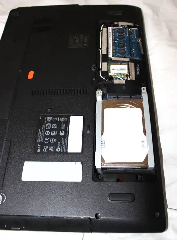 「Aspire 5750シリーズ」に搭載された2.5インチサイズの東芝製のSATAハードディスクを、