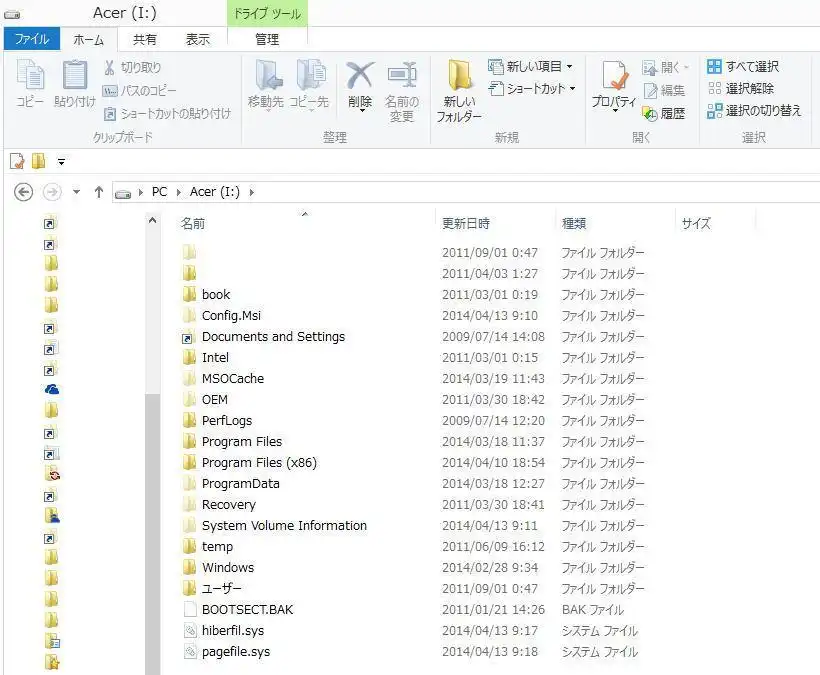 この中の「ユーザー」や「ドキュメント」、「Program Files」といったフォルダーから、