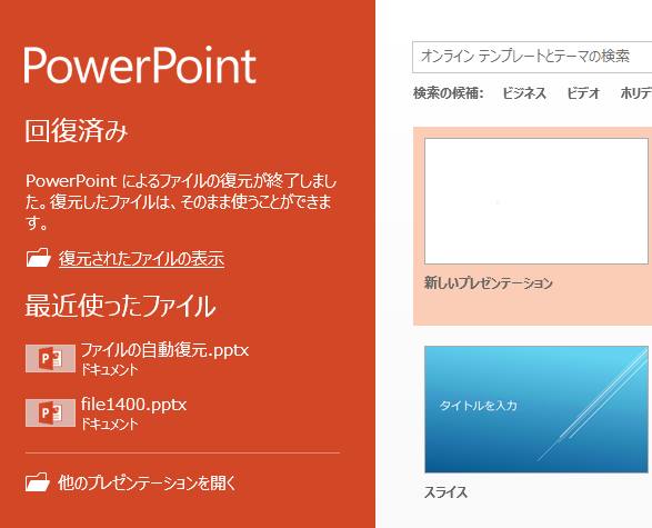 こちらの上側にあたる「最後の自動保存で作成されたファイル」を選択すると、