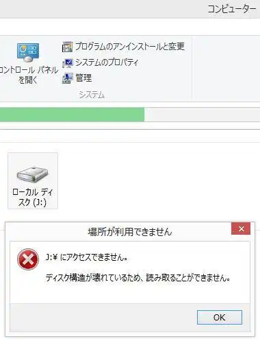 アクセス状態が修復されていれば、これを外付けハードディスクとしてウィンドウズで使えます。