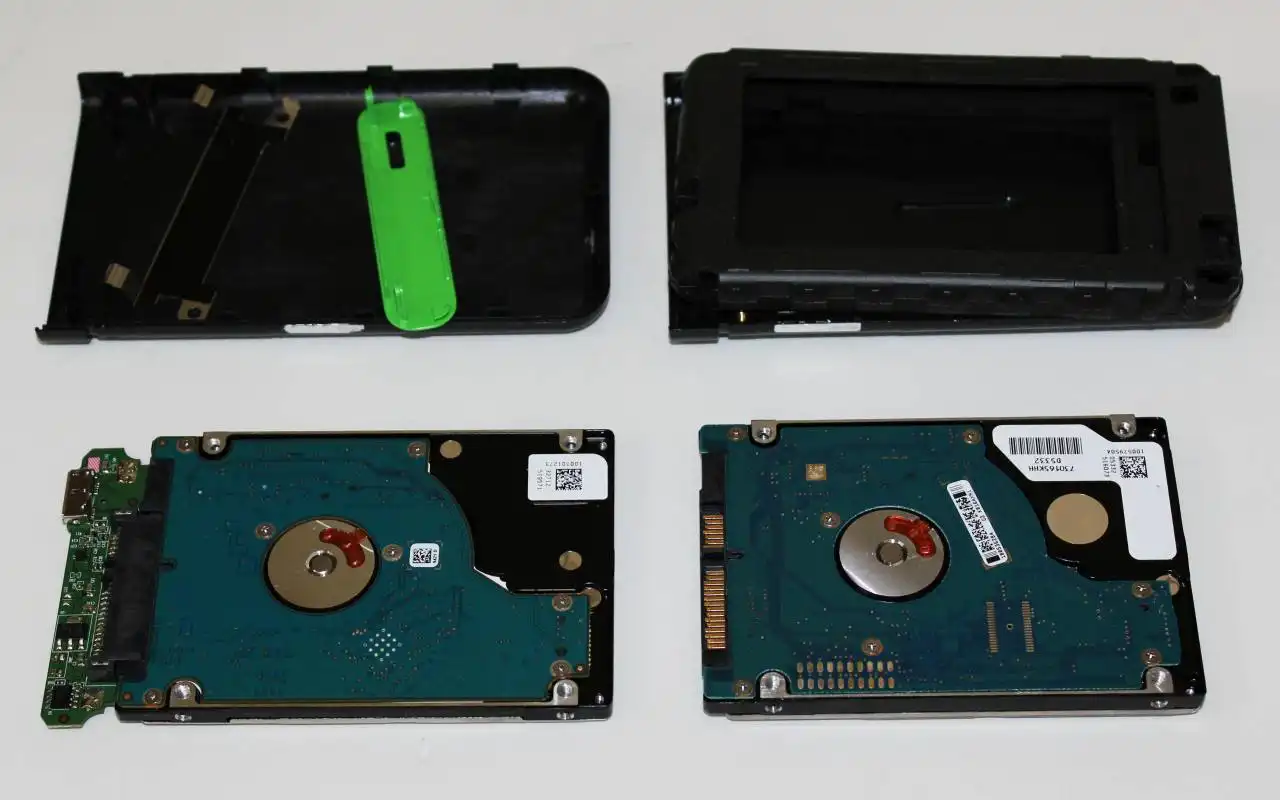 次に、外付けハードディスクケースに内蔵されているカートリッジに設置された、