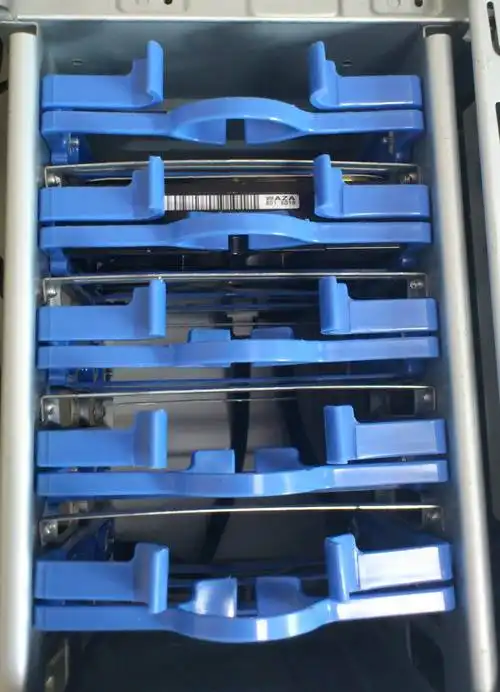 次に、新品に交換する際には3.5インチベイのステンレスの金具に取り付けられた内蔵のHDDを、