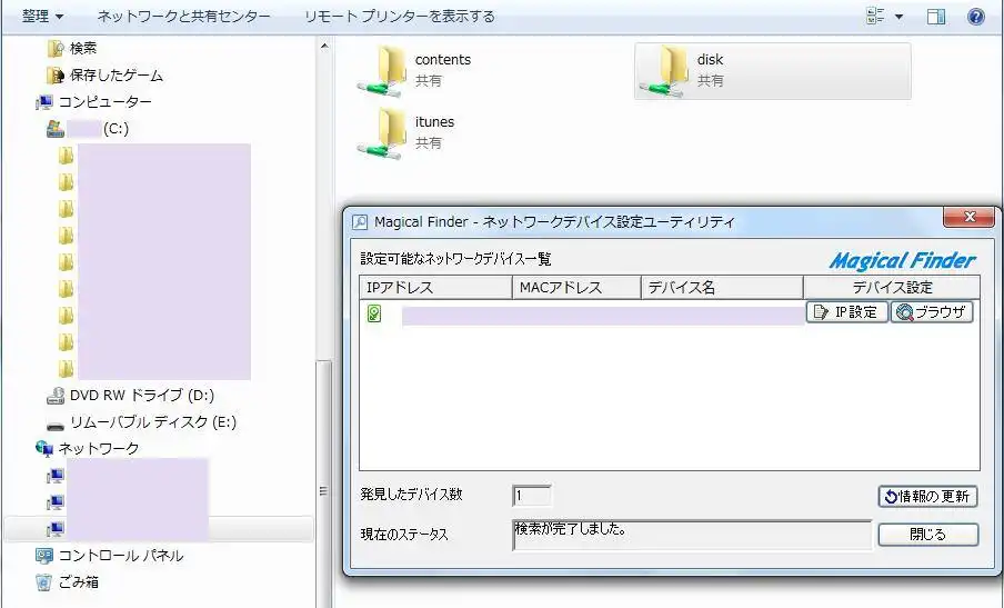 また、LinkStationの「NAS Navigator2」や、LANDISKの「Magical Finder」といった専用ソフトは、