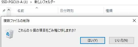 データを削除(Delete)した場合にも、直接消去されずにいったんファイルがごみ箱に移動します。