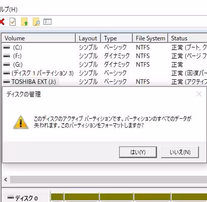 といった、USBデバイスのデータ記憶装置を、パソコン上などの操作で誤ってフォーマットを実行してしまい、