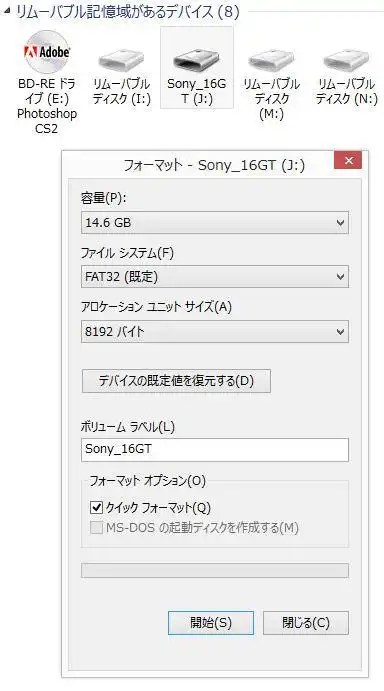 念のために、またパソコンから同じくUSBメモリが開けない状態になる可能性を想定して、